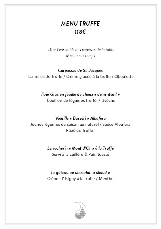 Menu en 5 temps, selon l’inspiration du chef et des saisons
